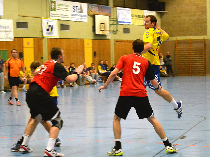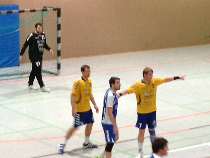 Fellbach erwischte den besseren Start, dabei stellte die offensive 3:2:1-Abwehrformation die SV Remshalden häufig vor große Probleme. Zudem waren die Brüder Bastian und Steffen Klett im Angriff nur schwer zu halten und trafen nach Belieben. Remshalden unterliefen in der Anfangsphase ungewohnt viele technische Fehler und so war die erste Auszeit nach nur 7 Minuten die logische Konsequenz. Doch auch in der Folge sollte das Spiel der Hausherren nicht besonders rund laufen. Viele Einzelaktionen und wenig Bewegung im Angriff ermöglichten den Fellbachern immer wieder Chancen zu Gegenstößen, die die Gäste konsequent verwerten konnten. Beim 7:10 nach gut 20 Minuten war der Vorsprung der SVF auf drei Treffer angewachsen. Zumindest kämpferisch ließen die Remshaldener nichts vermissen, immer wieder zeigte sich der unbändige Willen, die Tore zu erzielen und so sorgte Uli Seybold mit zwei Treffern knapp zwei Minuten vor der Pause für den 12:13-Anschluss. Beim 13:14 wurden letztlich die Seiten gewechselt.