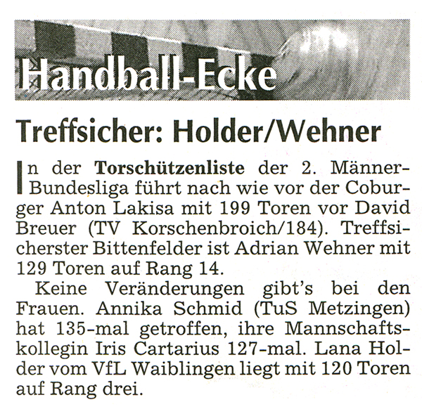 TV Bittenfeld: Brodbeck, Krotz; Wehner 8, Hauk 6, Schweikardt 5/1, Rothe 3/2, Häfner 1, Heib 1, Schöbinger 1, Prasolov, Drobek, Baumgarten.