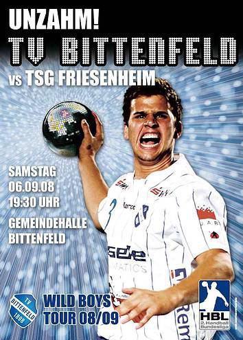 „Durch die Zusammenarbeit mit agencyteam Stuttgart wollen wir diese Attribute künftig noch stärker in den Vordergrund rücken und das Profil des Bittenfelder Handballs weiter schärfen“, sagt Jürgen Schweikardt, in seiner Funktion als Verantwortlicher für den Bereich Marketing und Kommunikation. Dabei hat sich das Bittenfelder Marketingteam gemeinsam mit den Werbeprofis sehr schnell auf einen Namen für die neue Imagekampagne einigen können: „Wild Boys Tour 08/09“. Ein Slogan, der nicht von ungefähr kommt und der in der neuen Runde auf allen Plakaten, Eintrittskarten, Spieltagsheften, Fanartikeln und auf der bis Ende September neu gestalteten Homepage zu lesen sein wird. Die TVB-Spieler sowie ihr Umfeld haben in den letzten erfolgreichen Jahren gezeigt, dass sie „wild auf den Erfolg“ sind. Und weil das Gros der Akteure um Alexander Heib und dem frisch gebackenen Olympiazweiten Björgvin Gustavsson zudem junge Spieler sind, habe man sich sehr schnell auf „Wild Boys“ geeinigt.
