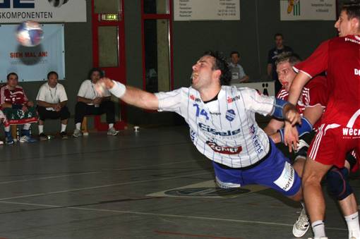 Auch Fröschle hatte sich etwas ausgedacht. Mit einer offensiven Deckung wollte er den wurfgewaltigen Dinosaurier-Rückraum der TSG Münster mit den beiden ehemaligen deutschen Nationalspielern Jan-Olaf Immel (32) und Steffen Weber (36) sowie dem reaktivierten Ziad Rejab (38) müde machen. Eigentlich eine gute Idee. Allein: Die TSG ließ sich davon nicht aus der Ruhe bringen.