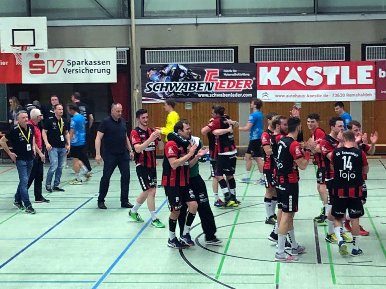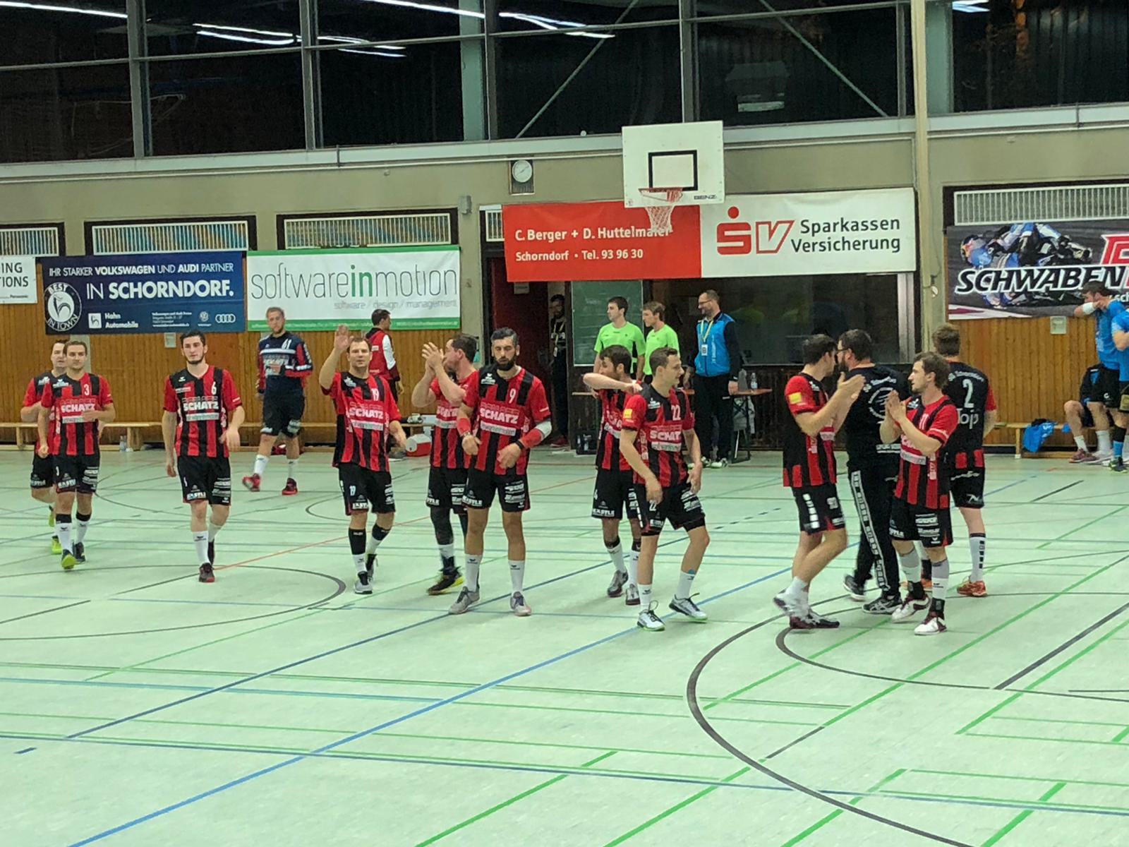 Der Jubel und die Freude waren grenzenlos und Schorndorf ist somit die erste Mannschaft die Weinstadt in dieser Saison besiegen konnte. Trainer Slavko Pustoslemsek ist sehr stolz auf seine Mannschaft die trotz einer schlechten Trainingswoche auf den Punkt da war und die Vorgaben vor allem in der ersten Halbzeit perfekt umgesetzt hat. Mit 5 Siegen in Folge reißt man kommendes Wochenende zum Heimstarken TV Großbottwar der bisher nur gegen Weinstadt punkte in der eigenen Halle hergegeben hat.