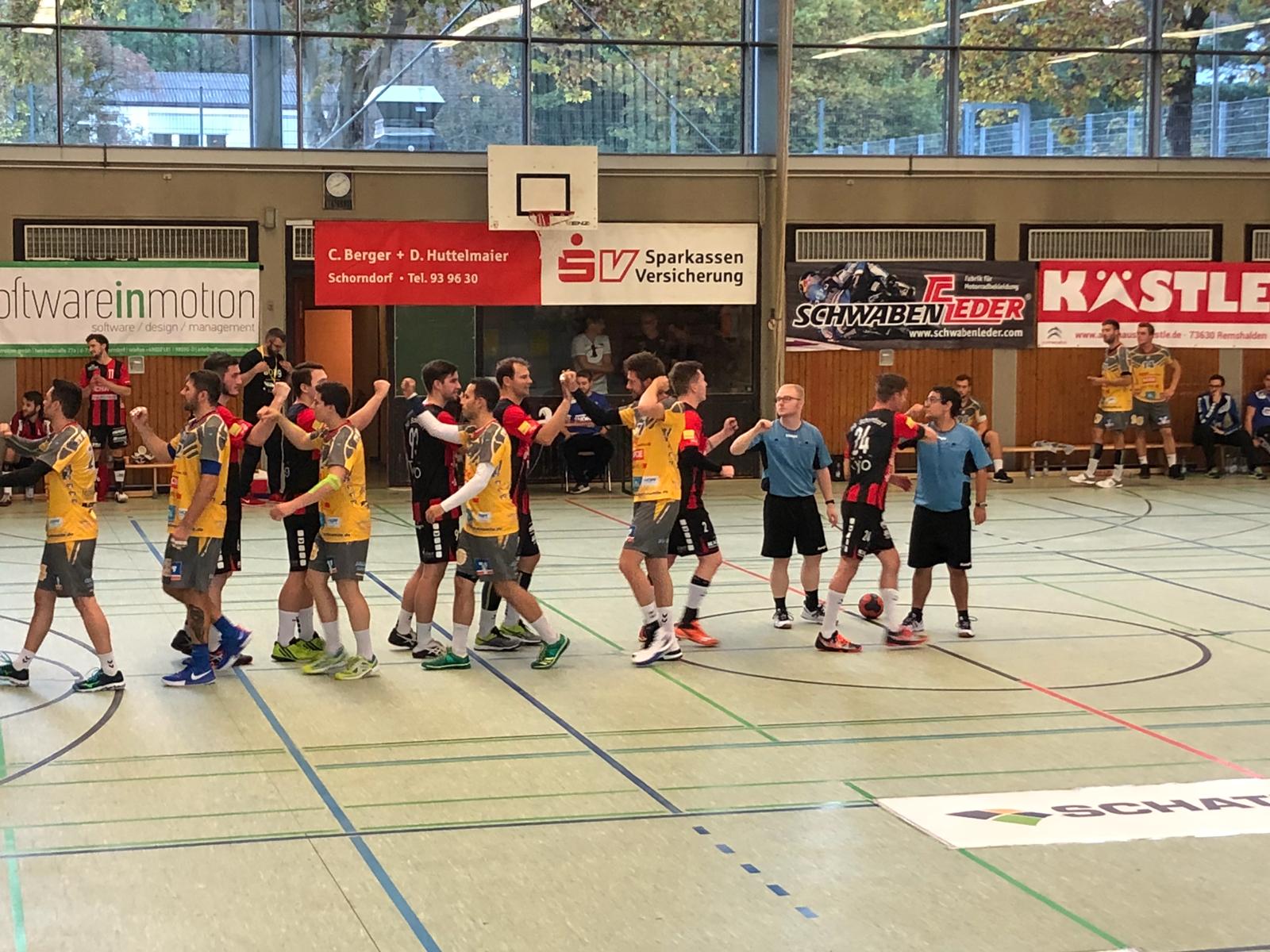 Das Derby in Weinstadt konnten die Schorndorfer nach überragender erster Halbzeit für sich entscheiden. In einer gut gefüllten Halle konnte man dem, bis dato ungeschlagenen Tabellenführer Weinstadt die ersten Punkte abnehmen.