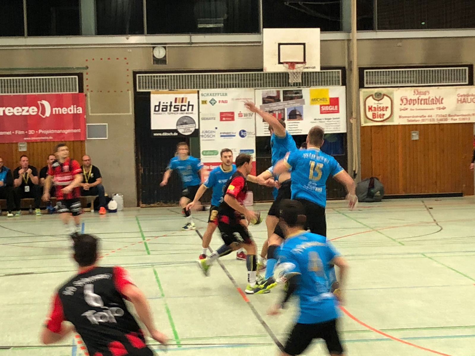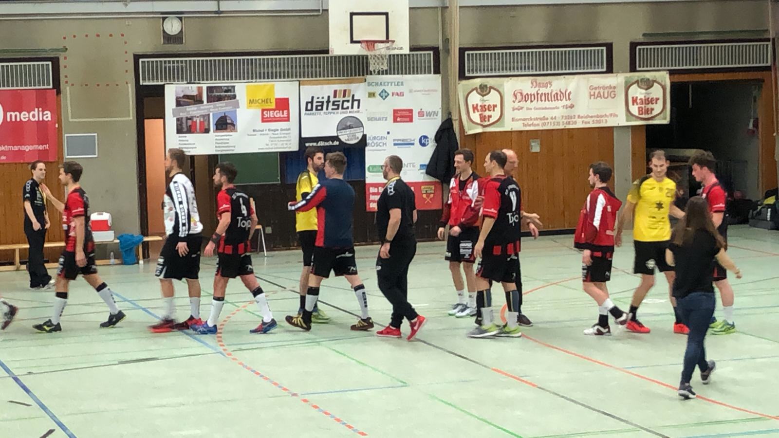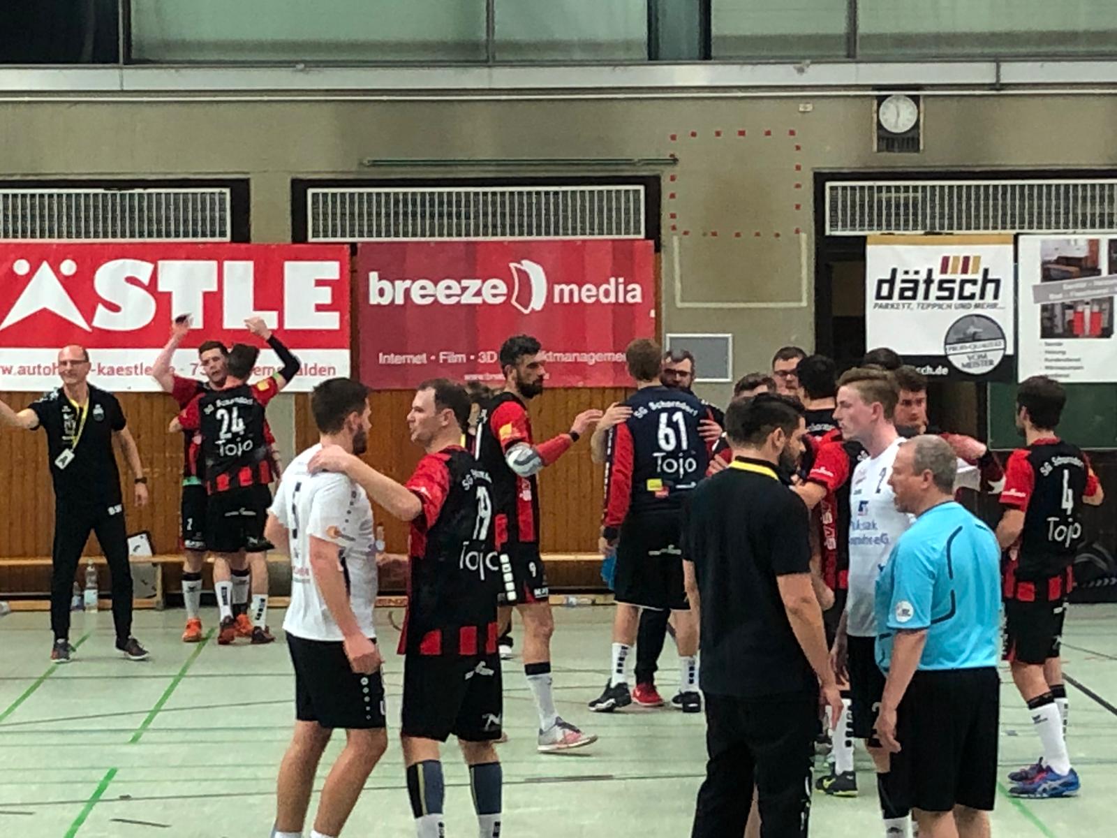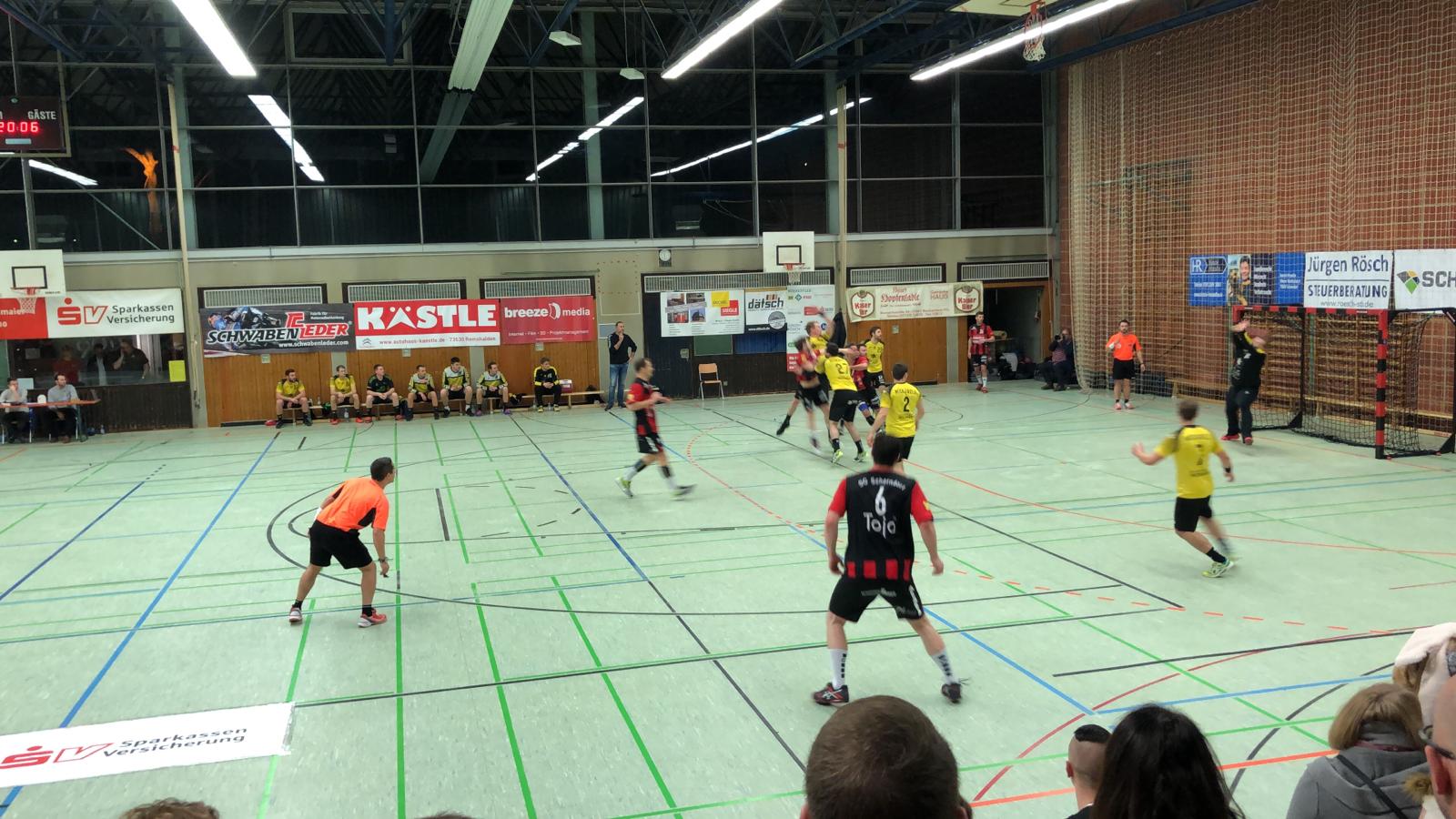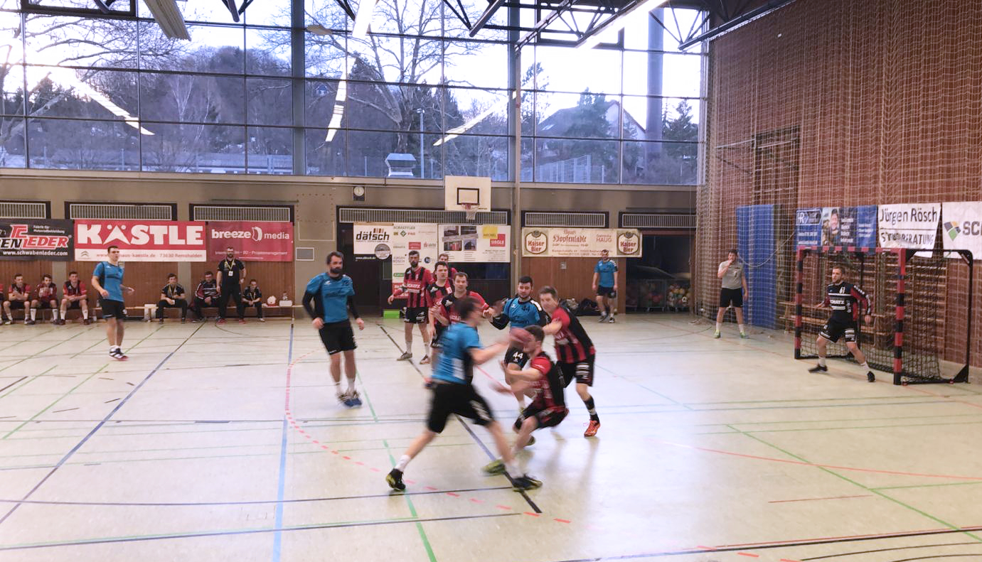 Es entwickelte sich ein knappes Spiel mit leichten Vorteilen für die Gäste die immer wieder 1 bis 2 Tore vorlegen konnten. Doch abschütteln ließen sich die Schorndorfer nicht. Immer wieder Adrian Wehner und Stefan Niederer konnten den Ball im gegnerischen Gehäuse unterbringen und es war alles angerichtet für eine spannende Schlussphase. Beim 30:30 in der 55 Minute vergab Niederer seinen ersten 7-Meter, konnte sich allerdings den Rebound sichern und den gut einlaufenden Marco Schuller bedienen. 3 Minuten später machte er es besser und brachte den Strafwurf sicher zum Spielstand 33:32 unter. In den folgenden 2 Minuten gelang beiden Mannschaften kein Treffer mehr und der letzte Angriff der Gäste endete in einem direkten Freiwurf, der geblockt werden konnte. So konnte man sich am Ende über einen knappen Sieg freuen.